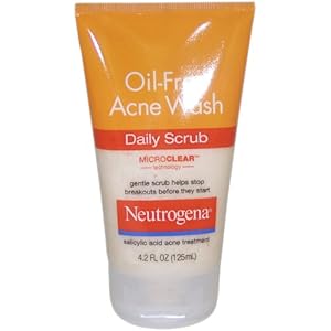 - Oil-Free Acne Wash Daily Scrub specifically formulated to penetrate deep into pores and help stop breakouts before they start. This breakthrough formula features MicroClear, a powerful technology clinically shown to boost delivery of acne medicine to clear congested pores and speed treatment deep to the source. MicroClear and gentle microbeads work together to cut through oil, dissolving dirt and impurities without overdrying or irritation. Skin is left clear and smooth.